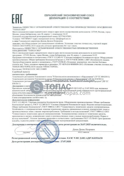 Септик ТОПАС-12 поставляются полностью укомплектованными и готовыми к эксплуатации. Изготавливается и поставляется в едином корпусе. Стандартная комплектация: